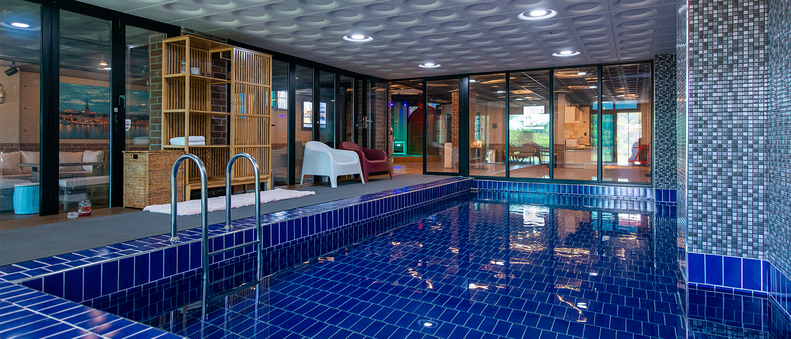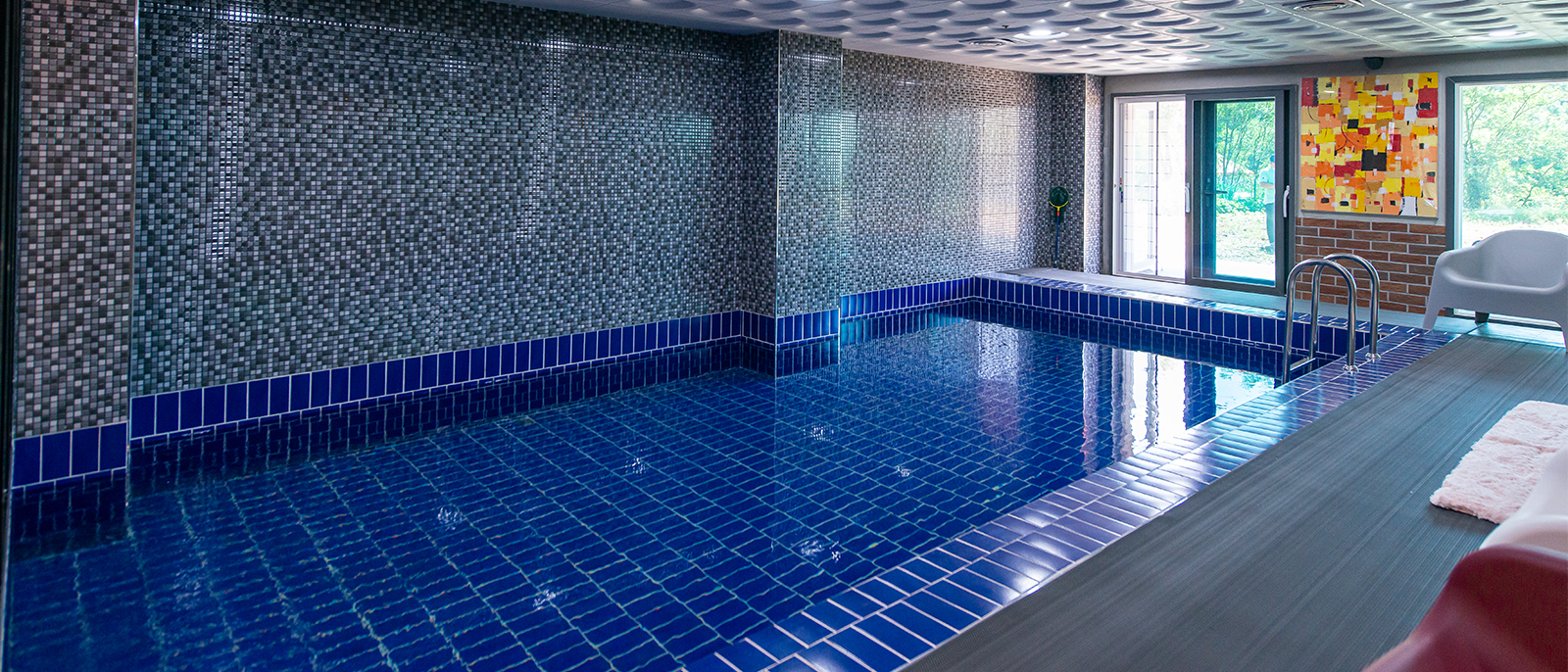 - 가로 8m x 세로 3.5m의 넓은 수영장으로 10~15명 동시 이용이 가능합니다.