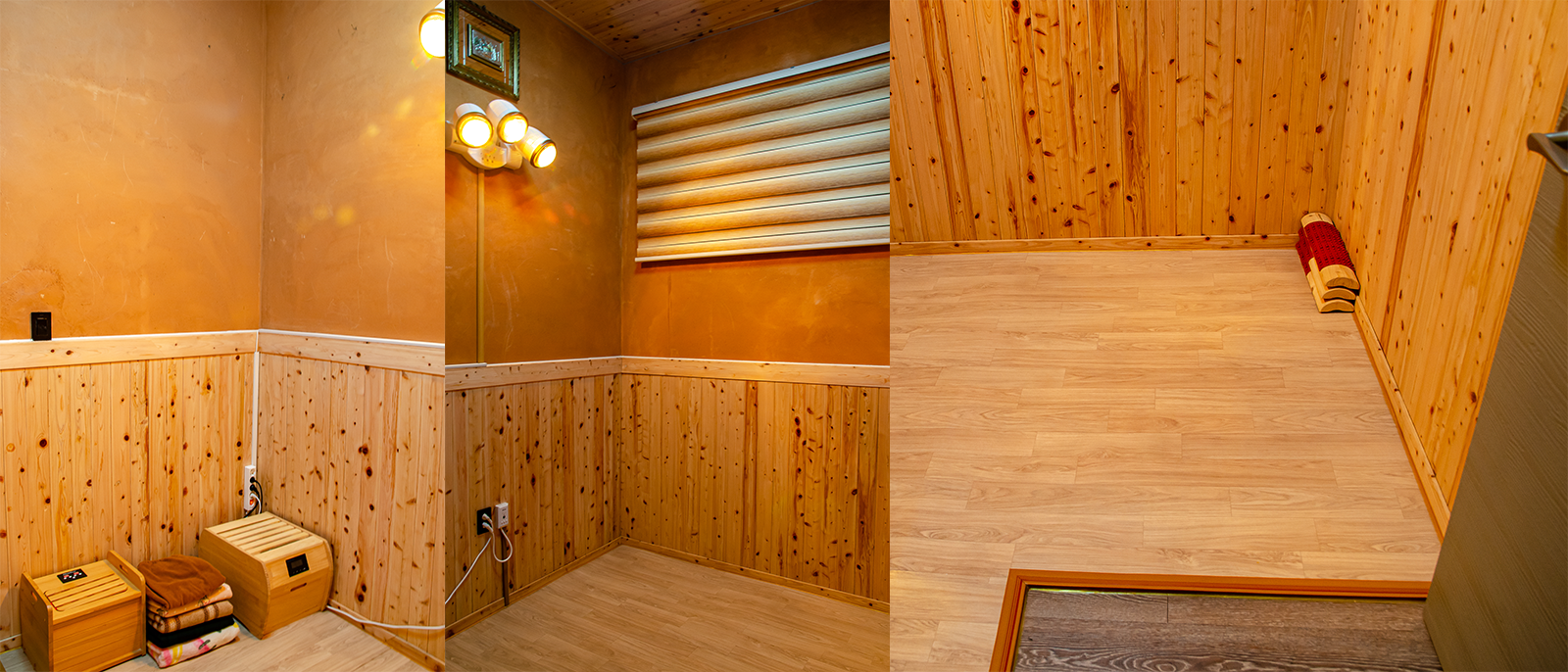 - 황토 및 편백나무로 마감되어 있는 휴식공간입니다.