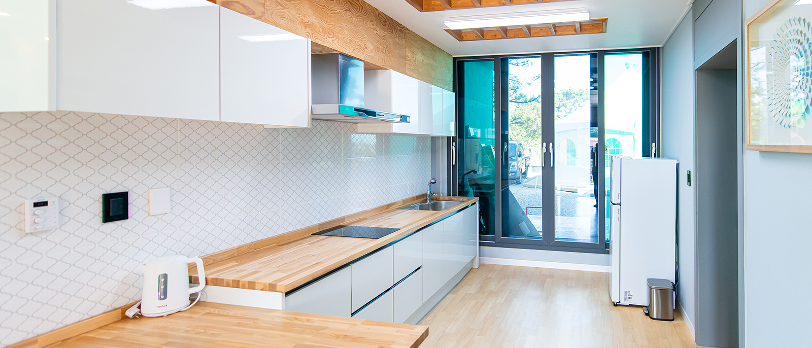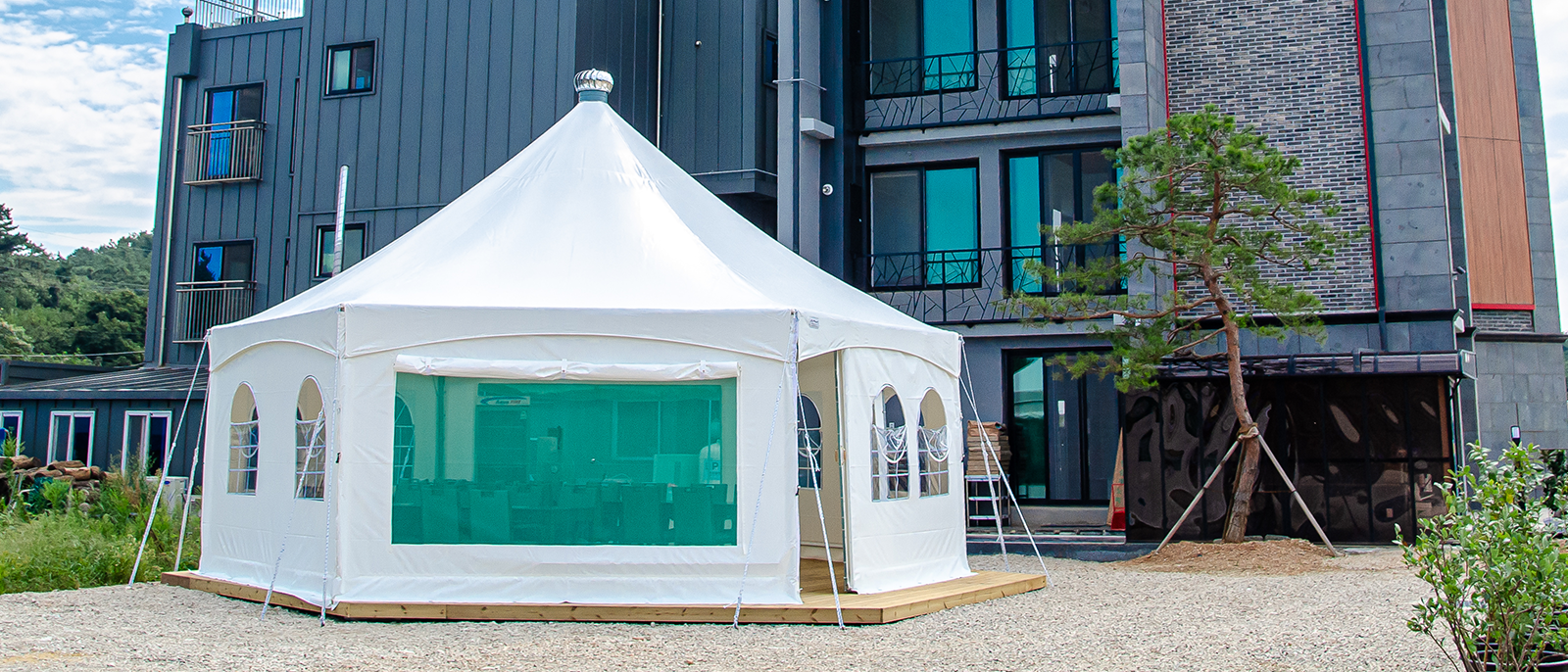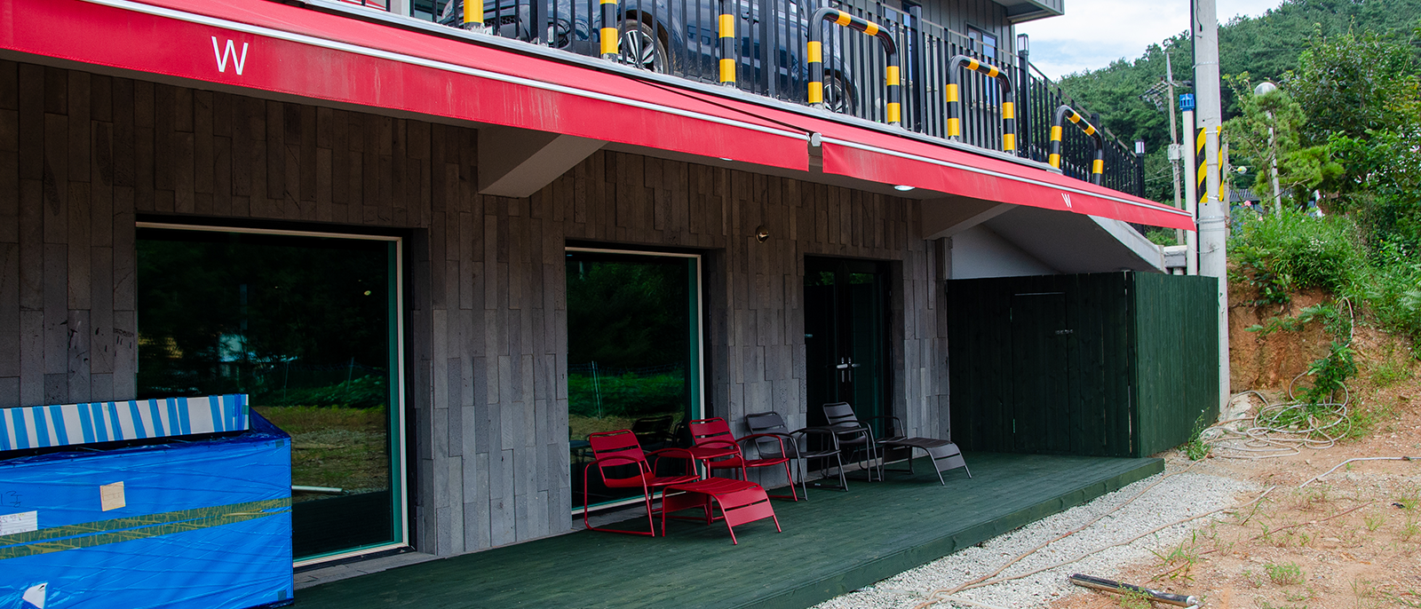 객실은 본관 건물 1,2,3층에 독채 형태의 3개 객실이 있습니다. 1층 다알리아(Dahlia Room), 2층 아카시아(Acacia Room), 3층 까멜리아(Camelia Room)로 각기 다른 테마의 인테리어로 꾸며져 있습니다. 각 객실은 거실, 주방, 화장실, 침실로 구성되어 있으며, 기준인원은 총 20명입니다.